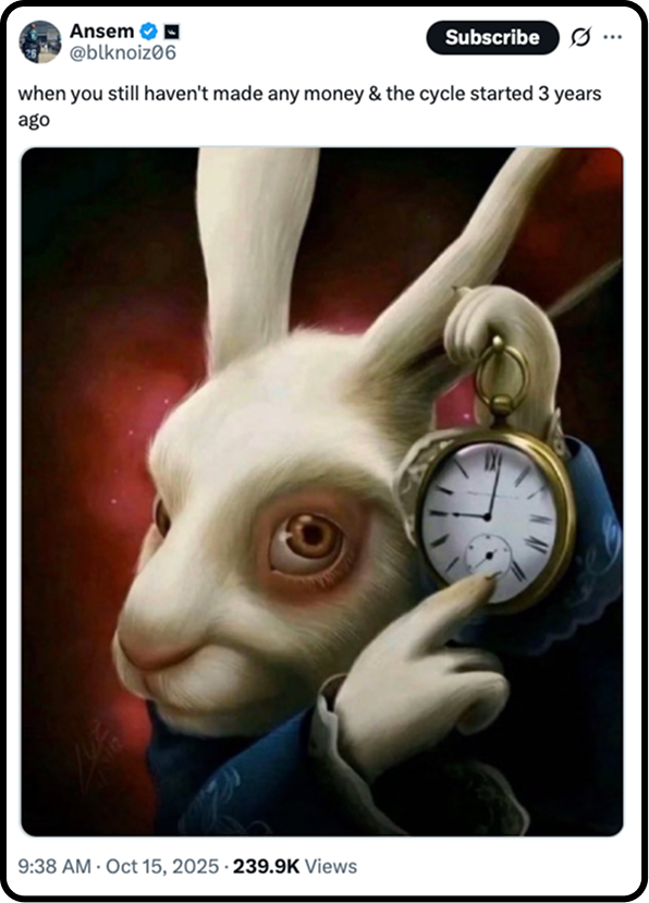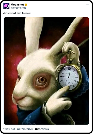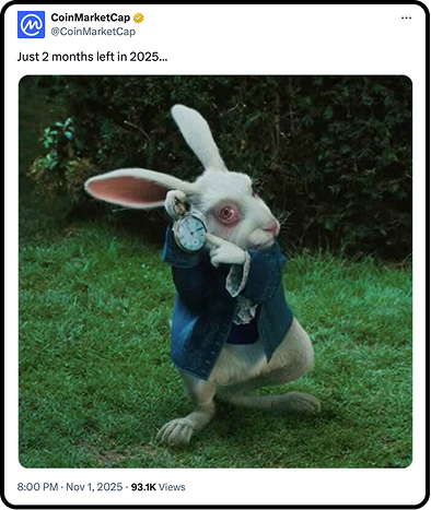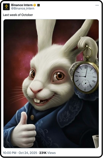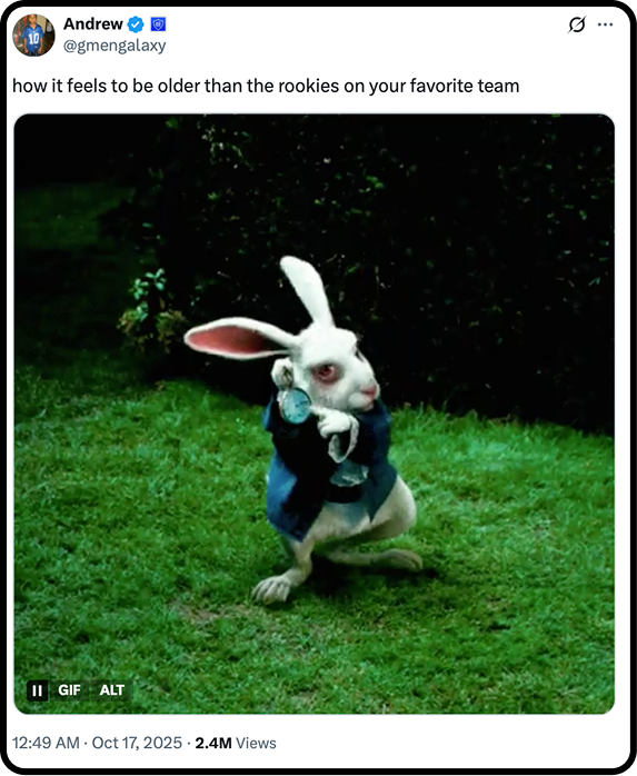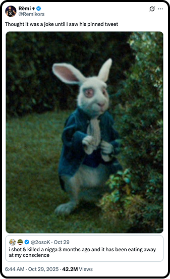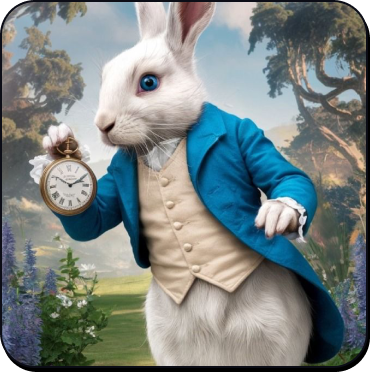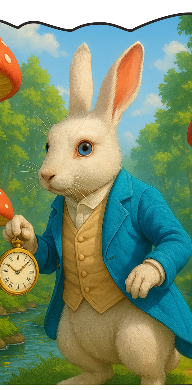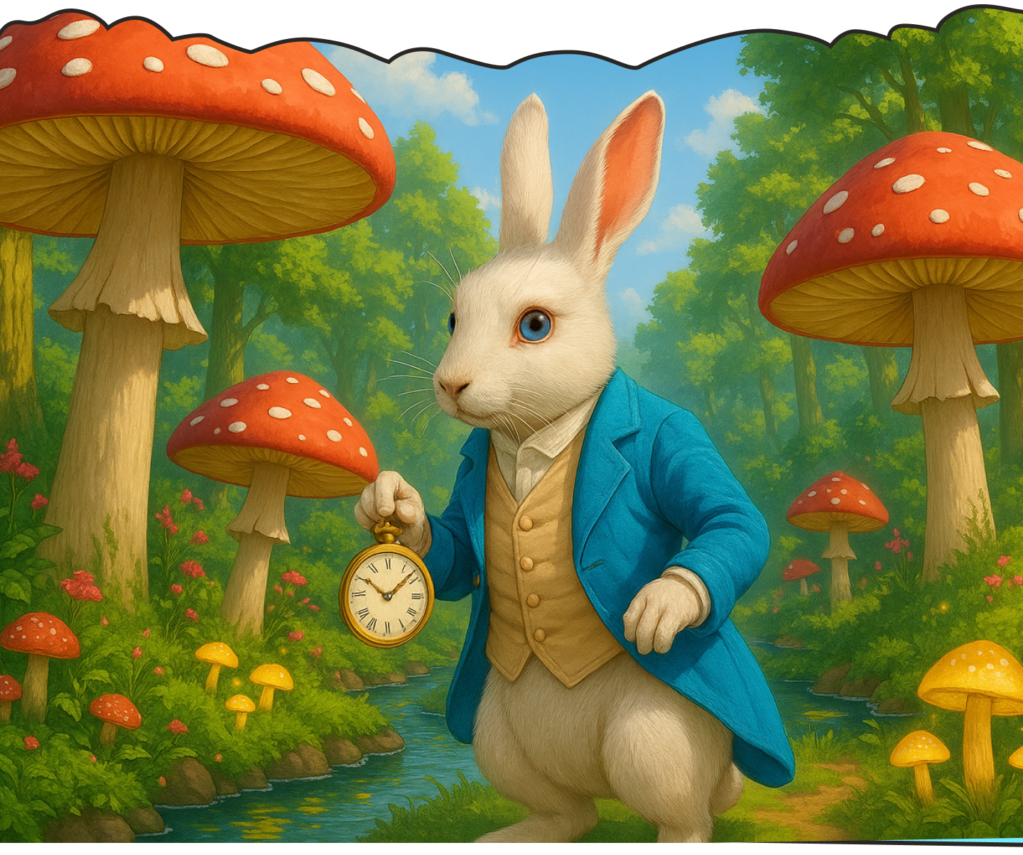 A 2010 fan illustration of the White Rabbit from Alice's Adventures in Wonderland checking his pocket watch went viral on X in mid-October 2025, generating over 800,000 posts and 1.1 million engagements.